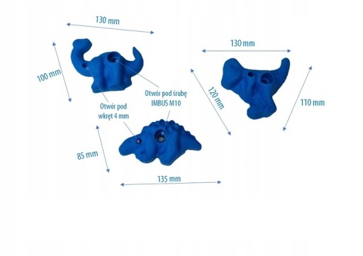 У набір входять 3 пластикові альпіністські елементи, які кріпляться гвинтами M10 Allen і fi4mm, що входять до комплекту.