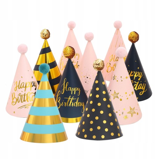 Це набір шапок на день народження. Гарне виконання, блищить і має блиск. Один капелюх і золота еластична мотузка упаковані в пакет OPP. Стилі різноманітні та красиві. Красивий дизайн робить його більш привабливим. Кілька різних капелюхів, які підходять для різних випадків і потреб.