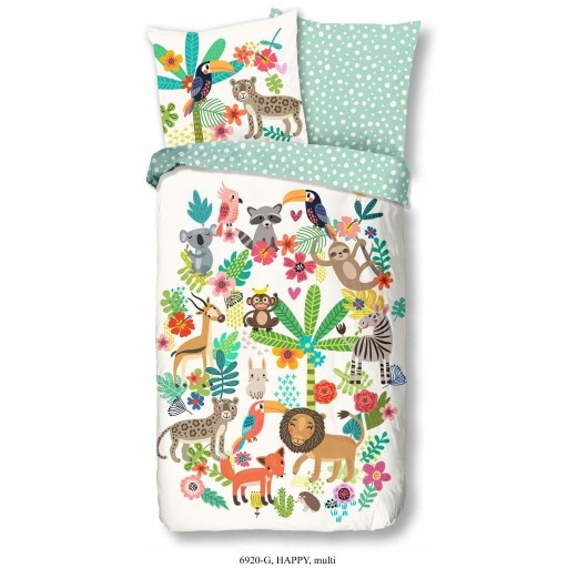 Комплект постільної білизни Happy є частиною колекції Good Morning, яка пропонує вибір постільної білизни, що відповідає останнім тенденціям і в широкому діапазоні візерунків і кольорів, що підходить як для молоді, так і для літніх людей.