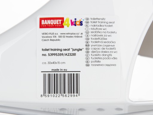 Сидіння для унітазу JUNGLE - це спеціальний чохол для дітей, які починають самостійно ходити в туалет. Чохол для сидіння унітазу з протиковзким покриттям є зменшеною копією звичайного сидіння для унітазу і запобігає ковзанню дитини в унітаз. edes виготовлений з м'якого пластику, легко миється, дуже стійкий і підходить для більшості туалетів. Ноно 25 кг. Розміри: приблизно 30 x 40 x 15 см. Без BPA.