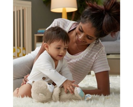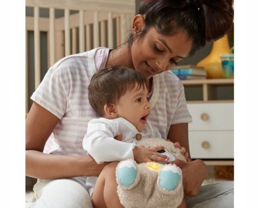 Іграшка відтворює 30-хвилинну заспокійливу музику та інші звуки (наприклад, серцебиття, солодке хропіння або білий шум) і світиться делікатним світлом.