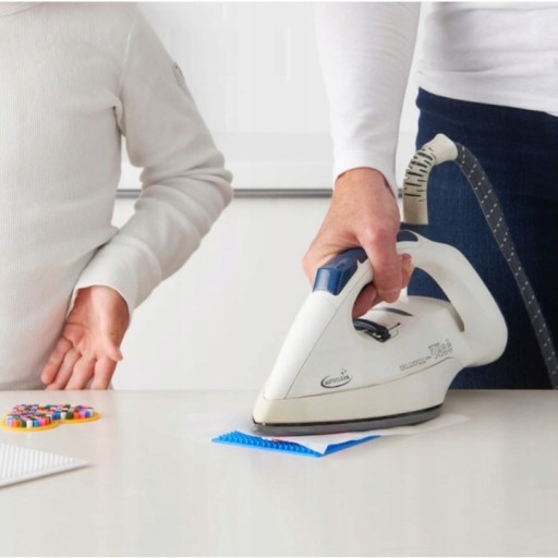 Коли візерунок буде готовий, накрийте намистини папером, що входить в комплект, і пропрасуйте їх теплою/гарячою праскою протягом декількох секунд, щоб намистини злилися. Після прасування залиште візерунок з бісеру вийти. Покладіть його на рівну поверхню і не згинайте, і все, ми можемо насолоджуватися нашою новою іграшкою!