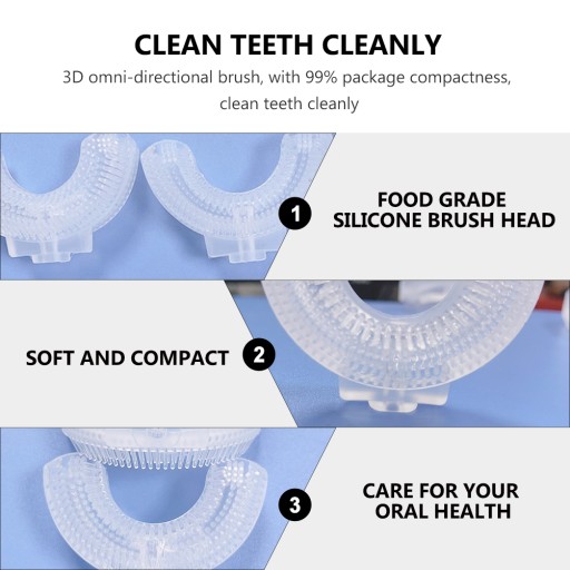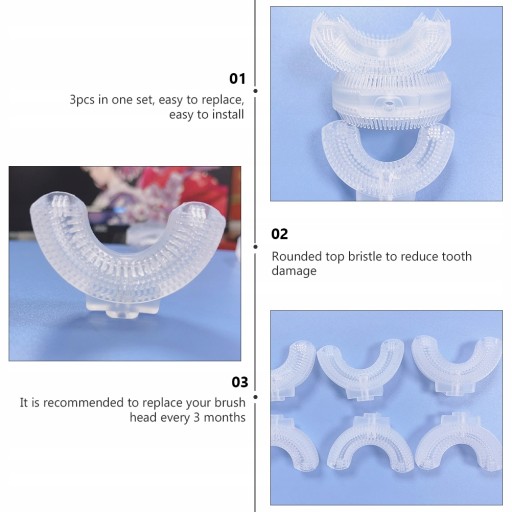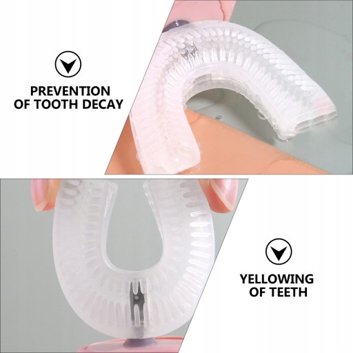 Це набір U-подібних силіконових дитячих зубних щіток, які виготовлені з харчового силікону найвищої якості та безпечні для дітей. Насадка для щітки з харчовим силікагелем і гігієнічна, зручна у використанні, не травмує ясна.