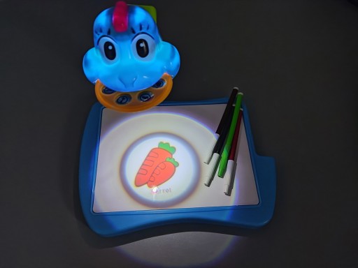 Маленький художник також має у своєму розпорядженні 12 фломастерів, якими він може малювати прямо на дошці для сухого стирання, вбудованій в проектор. Дошки очищаються сухою губкою або ганчіркою.