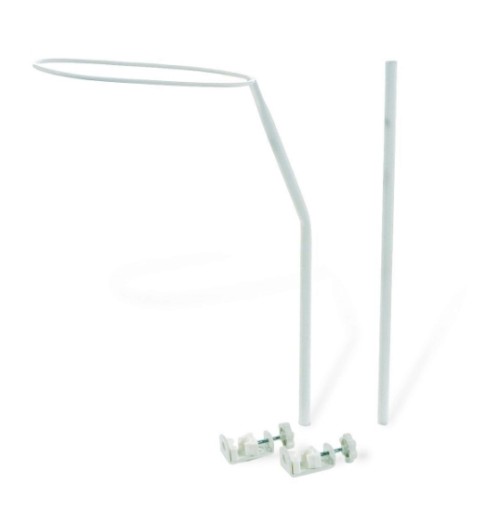 Стела призначена для дітей. Завдяки тому, що він регулюється, його можна кріпити як на короткій, так і на довшій стороні балки за допомогою ручок. Стела виготовлена з високоякісних матеріалів і пофарбована білою порошковою фарбою. Ручки виготовлені з якісного пластику і гладкі, що важливо при установці навісів або москітних сіток.