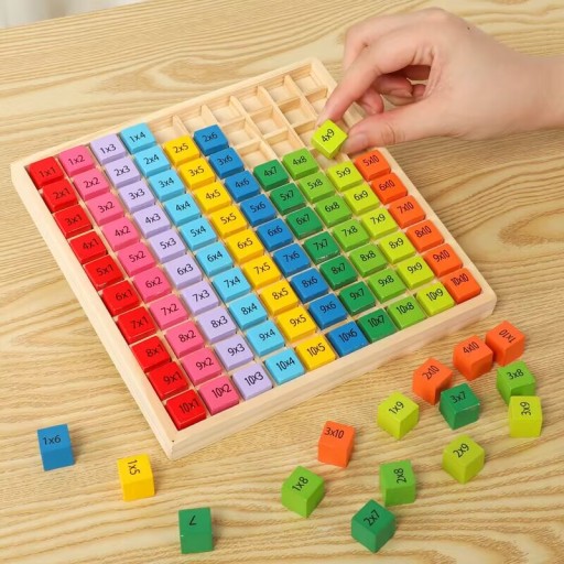 Набір таблиці множення повністю виготовлений з дерева та пофарбований безпечними фарбами в яскраві, яскраві кольори.