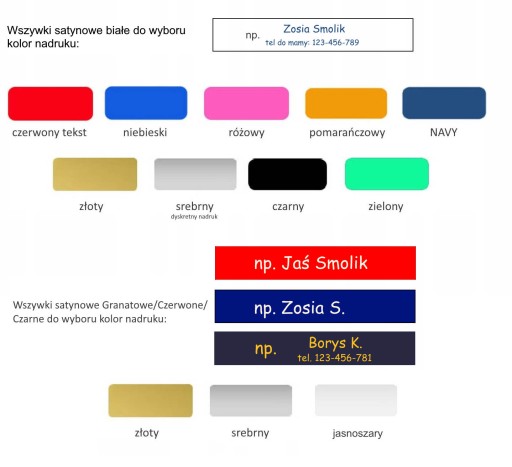 Доступні кольори друку для атласної етикетки BLACK, RED або NAVY NAVY: