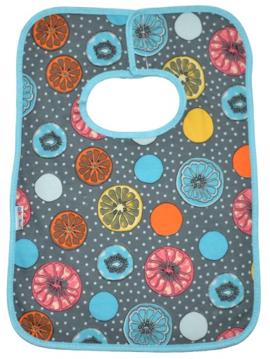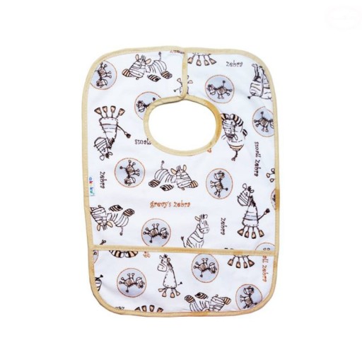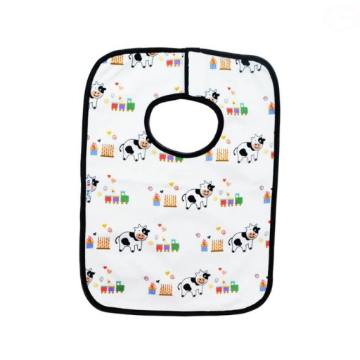 Нагрудник виготовлений з високоякісної 100% бавовни. Внутрішня частина обшита водонепроникним шаром м'якої клейонки, який додатково захищає одяг від бруду і робить нагрудник водонепроникним. Зручна і практична застібка на липучці підвищує комфорт носіння нагрудника, а барвисті аплікації роблять прийом їжі дитини більш приємним. Зроблено в Польщі