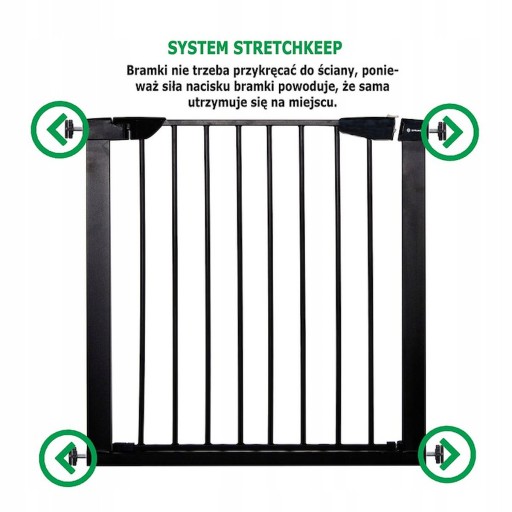Надійні надійні захисні ворота для дітей або маленьких і середніх тварин. Ворота можуть відокремлювати окремі зони в будинку, небезпечні для наших дітей. Захищає сходи та двері від неконтрольованого проникнення дітей. Ворота кріпляться за допомогою спеціальних гвинтів, що робить монтаж і демонтаж надзвичайно простим і швидким. Регулювання дозволяє встановити ворота між дверними коробками шириною 75-124 см.