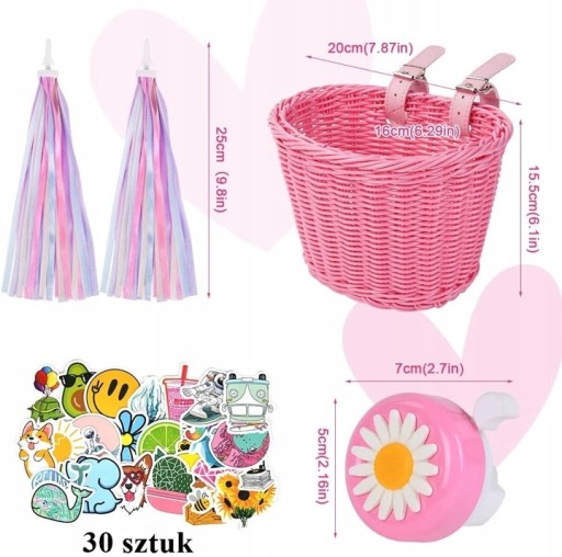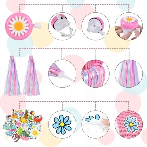 Наш набір з рожевим кошиком, наклейками, дзвіночком і бахромою зробить кожну велосипедну подорож повною посмішок і захоплюючих пригод!