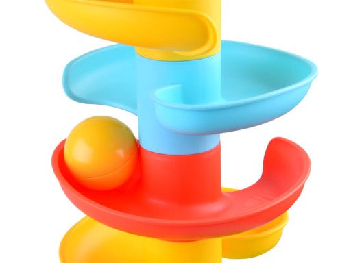 - висока, покручена, барвиста вежа, на вершині якої тріумфує король-лев, з гумовою гривою, яка слугує прорізувачем для зубів. З цієї крученої піраміди різнокольорові штампи котяться аж до самого низу, поки не досягають ніжок столів.