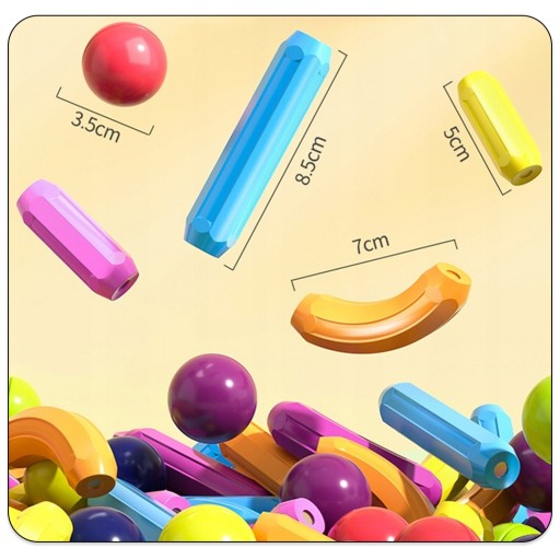 Великі кулі діаметром 35 мм виготовлені з металу та покриті глянцевим лаком. Різнокольорові палички мають на кінцях сильні магніти. Всі елементи можна з'єднати між собою - палицю з палицею або палицю з м'ячем.