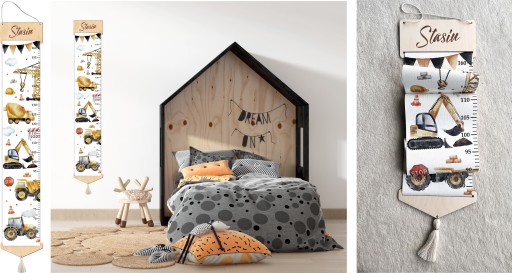 численні персоналізовані таблиці зростання, надруковані на полотні.