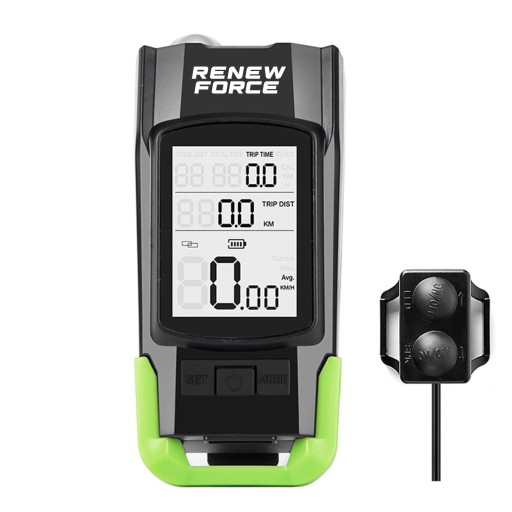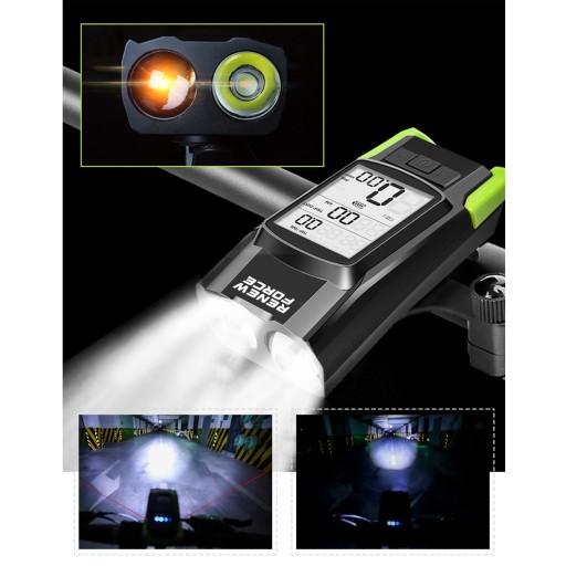 Велосипедний ліхтар з лічильником - надзвичайно корисний пристрій 2 в 1. Велосипедний передній ліхтар з ефективними LED діодами і 4 режимами освітлення адаптується до будь-якої дороги і будь-яких умов. Вибираючи між широким і вузьким пучком світла або функцією стробоскопа, ви можете налаштувати світло так, щоб вас було добре видно на дорозі. Маленький велокомп'ютер комплексно подбає про якість і динаміку кожної вашої поїздки. Завдяки вбудованим режимам, велокомп'ютер дозволить вам перевірити вашу поточну швидкість, пройдену відстань, час кола та середню швидкість!Все це на чіткому LCD-дисплеї з підсвічуванням, стійким до дощу! Включений задній ліхтар забезпечить вашу безпеку в будь-яких умовах.