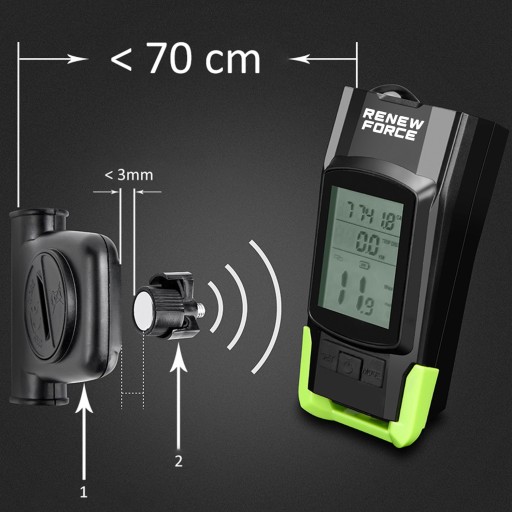 При складанні комплекту звертайте увагу на відстань між окремими елементами. Відстань між лічильником і датчиком, встановленим на вилці переднього колеса, не перевищувала 70 см. Відстань між магнієм і датчиком не повинна перевищувати 3 мм. Переконайтеся, що ви правильно встановили набір, щоб забезпечити правильні вимірювання.
