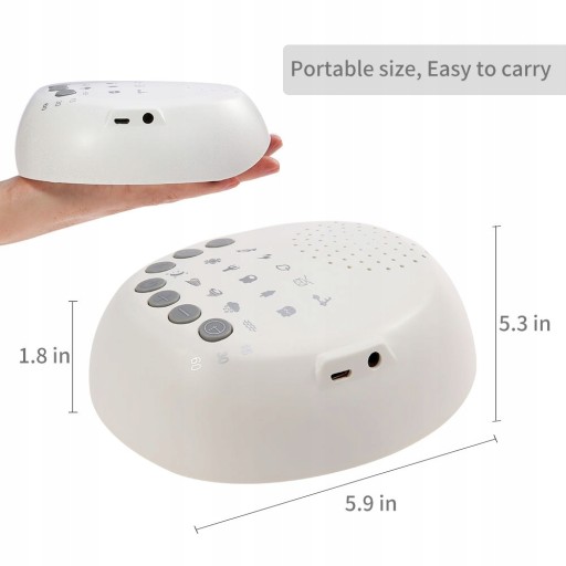 Короткий вступ: Використовуйте звукову машину, щоб швидше створити спокійне середовище для сну та прокинутися повністю відпочилим. 15 тихих звуків 5 звуків для сну 5 звуків для відпочинку 5 звуків для пробудження. Портативний і легкий адаптер живлення та USB-адаптер живлення є хорошими супутниками, доступними під час подорожі з дитиною або у відрядженні. Особливості: Різні варіанти звуку: 15 тихих звуків, 5 звуків сну: Рібейро, дощ, вітер, океан, літня ніч; 5 Звук для розслаблення: Терапія Brain Forest Медитації Relax Noise White; 5 Звук пробудження: Engine Black Noise Bird Thunder Ambient. Багаторазове використання: ви можете використовувати його, щоб допомогти вам заснути, запобігти відволіканню або підвищити концентрацію під час навчання чи роботи. Секундомір з автоматичним вимкненням: таймер автоматичного вимкнення можна встановити на 15 30 60 хвилин для економії енергії. Регульована гучність: регульований регулятор гучності дозволяє отримати потрібний звук Чудово підходить для подорожей: невеликий і легкий розмір Живлення від батареї та USB-адаптер живлення легко доступні, поміщається в сумку чи валізу, що робить його ідеальним супутником у подорожах. Технічні характеристики: Колір: Білий Живлення через: USB (в комплекті) Батарея: батарея 4.AA (не входить в комплект) Розмір предмета: 15 * 13,5 * 4,5 см / 5,9 * 5 * 3 * 1,8 дюйма Вага предмета: 180 г до 6,3 унцій Розмір упаковки: 18 * 16 * 6 см / 7,1 * 6 * 2,4 дюйма Вага упаковки: від 200 г до 7,1 унцій Список упаковки: 1