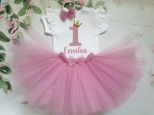 СПІДНИЦЯ-ПАЧКА з гарним бантом в тон до спідниці + пов'язка в тон на резинці без тиску + БОДИ з написом на день народження
