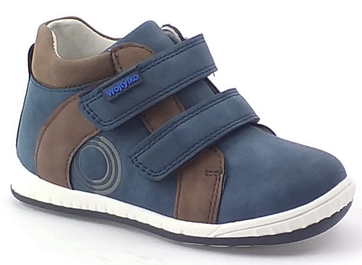 Дитячі чоботи без утеплювача Wojtyśko. Верх з екологічної шкіри, середина з екологічної шкіри та текстилю. Устілка натуральна шкіра. Застібається на липучку.