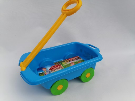 Візок з ручкою - відмінна ідея іграшки для маленького садівника! Він ідеально підходить для транспортування сипучих матеріалів, таких як пісок, земля та більші предмети. Виготовлений з високоякісного матеріалу, перевіреного як безпечний для дітей старше двох років. Діти люблять імітувати діяльність дорослих, тому малюк із задоволенням допоможе в роботі в саду. Діти люблять проводити час на свіжому повітрі, граючи в саду. Також це чудова іграшка для пісочниці.