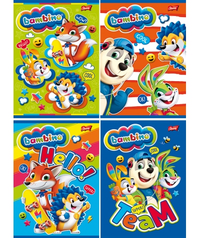 Високоякісні олівці, які супроводжують дітей поколіннями. Відрізняються виключно інтенсивними та насиченими кольорами та чудовою покриваністю поверхні. Вони ідеально підходять для малювання, заповнення великих поверхонь і створення м'яких переходів між кольорами. Крейди Bambino виготовлені з каолінової глини, що незрівнянно підвищує їх корисність у порівнянні з восковими, восковими або олівцевими олівцями. Кожен олівець має захисну паперову обгортку з власним малюнком (різна тварина на кожному олівці). Олівці Bambino безпечні для дітей, їх виробництво відбувається в Польщі, згідно з директивами Європейського парламенту та Ради щодо безпеки іграшок та постановою Міністерства економіки щодо основних вимог до іграшок.