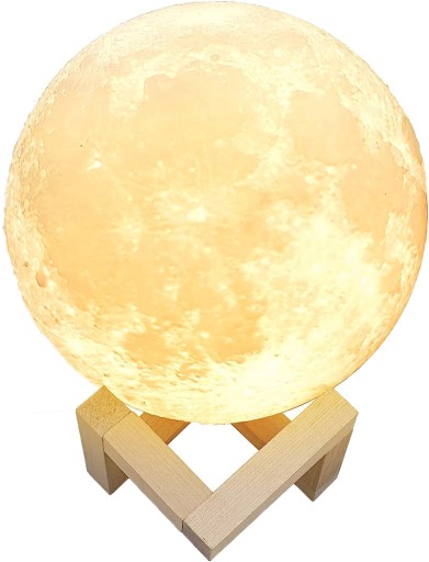 Виконано в техніці 3D, завдяки чому дуже реалістично відтворює наш супутник. Лампапри включенні він дає атмосферне освітлення в будь-якому кольорі, який ви виберете.За допомогою сенсорної кнопки ми можемо вибрати будь-який варіант освітлення нашого місяця.