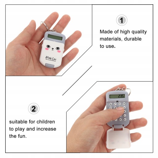 Виріб являє собою міні-калькулятор із пластику. Він міцний і безпечний протягом тривалого часу використання. Це