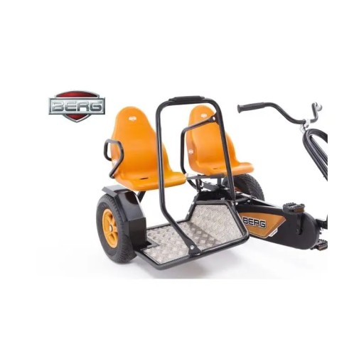 Подвійний картингна педаляхDuo Chopper BFкомпанійБергце надійний транспортний засіб, який подарує вашим дітям незабутнє задоволення! Картинг оснащений регульованими сидіннями, завдяки яким транспортним засобом можна користуватисядіти віком від 5 років!Пасажирське сидіння обладнане платформоюна якому можна стояти під час руху. Для безпекиплатформа була закріплена поручнями. Проста і практична конструкція виготовлена звисокоякісні матеріалинайвищого технічного рівня. Такий картинг - ідеальний транспортний засіб для вашої дитини, який він додатково підтримуєруховий розвиток.