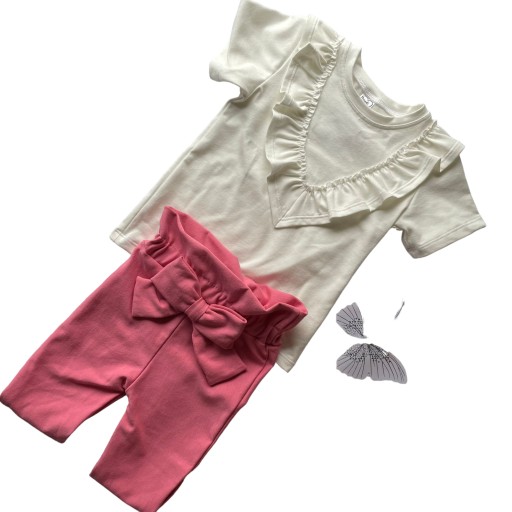 - бавовняні легінси з бантом спереду та воланом на талії красивого пудрового рожевого кольору
