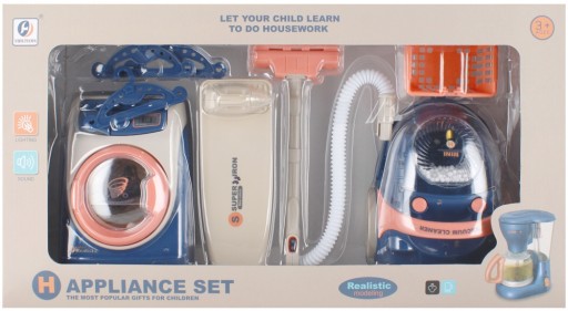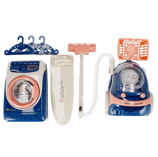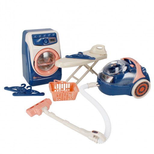 Переваги товару: пральна машина має звукові та світлові ефекти, дверцята барабана, що відкриваються, і висувний ящик для порошку, барабан пральної машини обертається при включенні, після прання можна вийняти зсередини, пилосос має звук. і світловими ефектами, після включення пилососа кульки пінопласту, поміщені в резервуар, обертаються, імітуючи процес пилососа. Саме час зайнятися пранням і прибиранням. Дозвольте своїй дитині виконувати цю домашню роботу самостійно у власній пральній машині MEGA CREATIVE і пилососити її власним пилососом. Ці вироби ідеально відображають справжню побутову техніку.В набір входять: пральна машина, корзина для білизни, 3 вішалки для білизни, прасувальна дошка, праска, пилосос. Вироби з пластику. Розміри/вага/батареї: розміри продукту Д х В х Г см: пральна машина - 10x14 х 8, пилосос - 13 х 8 х 12, розміри упаковки Д х В х Г см: 41 х 22 х 10, вага продукту без упаковки кг: 0,42 кг, вага продукту в упаковка кг: 0,68 кг, потрібні батарейки: пральна машина 3 x AALR06 - не входять в комплект, пилосос 2 x AALR06 - не входять в комплект. Іграшка призначена для дітей віком: 3 роки. Упаковано в коробку з віконцем. У збірному картоні по 12 шт.