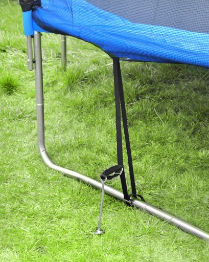 - ЗАХИСТ ВІД ПЕРЕКИДАННЯ - захисні анкери є необхідним аксесуаром під час сильного вітру. Хоча садовий батут зазвичай має велику власну вагу, його велика поверхня піддається сильним поривам вітру.