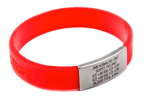 На браслеті ICEstripe Slim у вас є 5 рядків тексту (якщо вам потрібно більше місця, ми пропонуємо вибрати браслет ICEstripe Elite), у якому ви можете розмістити найважливішу інформацію про себе. Дані будуть вигравірувані лазером на значку з нержавіючої сталі.