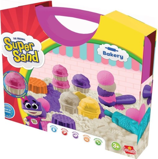 - Super Sand стимулює дитячу творчість і дозволяє їм вдосконалювати свої скульптури. На відміну від кінетичного плинного піску або твердіючої пластичної маси, Super Sand дозволяє будувати довговічні скульптури та вдосконалювати їх у багато разів (піщані скульптури не розпадаються спонтанно і не тверднуть).