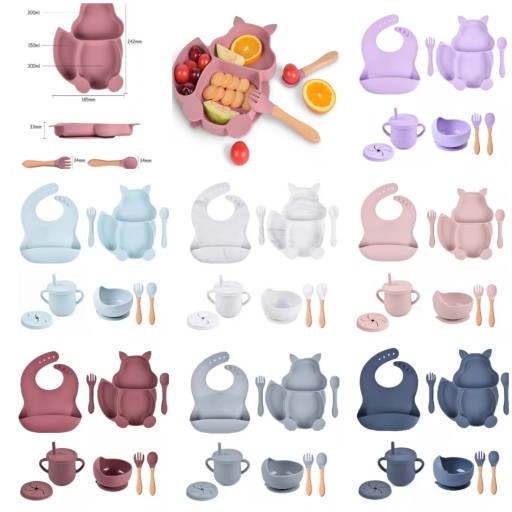 ВИНАХІДНИЦЬКИЙ ДАР:У силіконовому дитячому наборі є все необхідне для годування малюка! Включає білочу тарілку, маленьку чашку, ложку та виделку BLW, дерев’яну ложку та виделку, кришку для закусок, нагрудник для захоплення їжі та набір мисок. Ідеальний подарунок для хлопчиків і дівчаток 6-36 місяців, які тільки починають годувати грудьми.