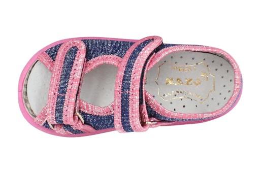 Босоніжки польського брендуНАЗОз яких ми вам представляємоміцна і міцна бавовняна тканина. Вони оснащені жорстким каблуком, який захищає стопи від утворення плоскостопості.