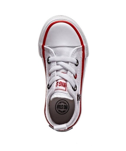 Кросівки від відомого брендуВелика зіркабули виготовлені з тканини. Підкладка також обшита м'якою тканиною. Модель урізноманітнює фірмовий логотип на язичку та металева зірка збоку верху. Характерний для цього крою круглий носок покритий гумою, яка додатково захищає пальці. Кросівки Big Star оснащені еластичними шнурками, завдяки яким їх можна насунути на ногу. Все це встановлено на товсту гумову підошву.