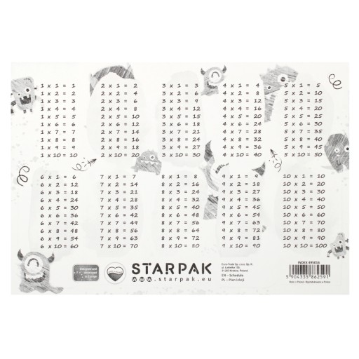 План уроку є обов’язковим елементом шкільного обладнання. План із колекції Starpak Monster поділений на п’ять днів тижня з 9 рядками для входу, щоб жоден учень не забув про потрібні йому книжки чи зошити в певний день. Дружня графіка зробить кожен день у школі добре спланованим і успішним. Також ознайомтеся з іншими продуктами Starpak План уроку з паперу. Зроблено в Польщі.