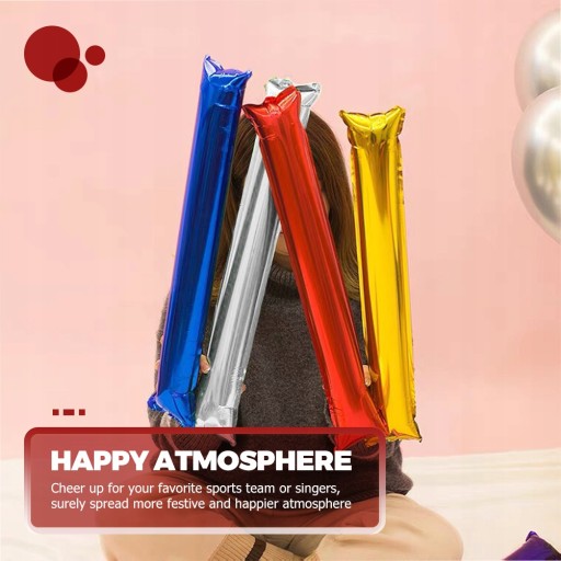 Ось кілька надувних палиць, виготовлених із пластику, потовщених для більш безпечного та безпечного використання. Ідеально підходить для всіх видів спортивних заходів, вечірок, парадів, мітингів, концертів тощо. Дуже легко створити атмосферу радості та захоплення. Простий у використанні та утриманні, ідеально підходить для будь-яких спортивних подій або заходів на свіжому повітрі, таких як баскетбол, футбол та інші ігри.