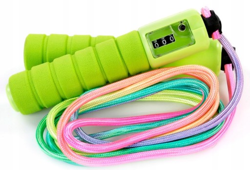 Скакалка з пінопластовими ручками з вбудованим лічильником для вимірювання кількості стрибків.