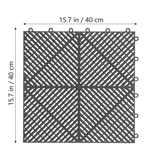 Ви отримаєте водостійкі квадратні килимки з великими дренажними отворами, які дозволяють воді швидко стікати.
