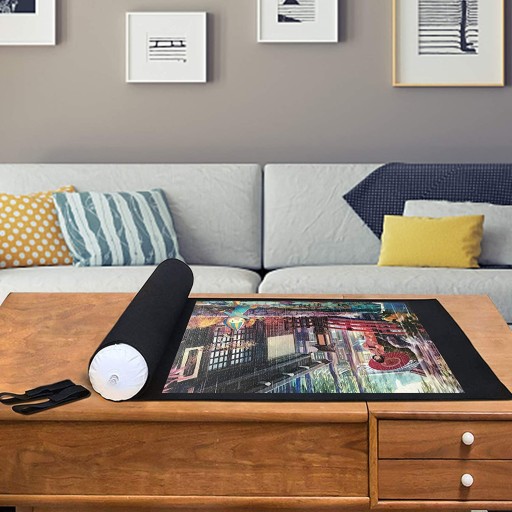 Килимок полегшить зберігання та перенесення розпочатого пазла. Якщо ви хочете приховати малюнок, просто надуйте трубку та згорніть килимок-пазл. Це захистить головоломку від розвалювання та дозволить вам зібрати пазл пізніше.