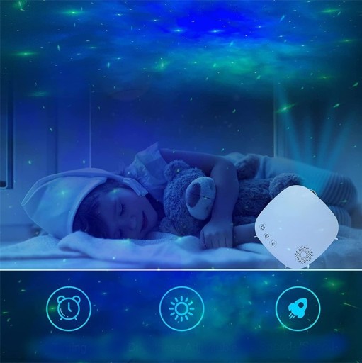 Цей простий у використанні та сучасний проектор ідеально підходить як пристрій для створення чудової атмосфери на звичайних зустрічах з друзями або під час вечірки, і навіть для того, щоб приспати дитину, створивши в кімнаті красиву галактичну туманність.