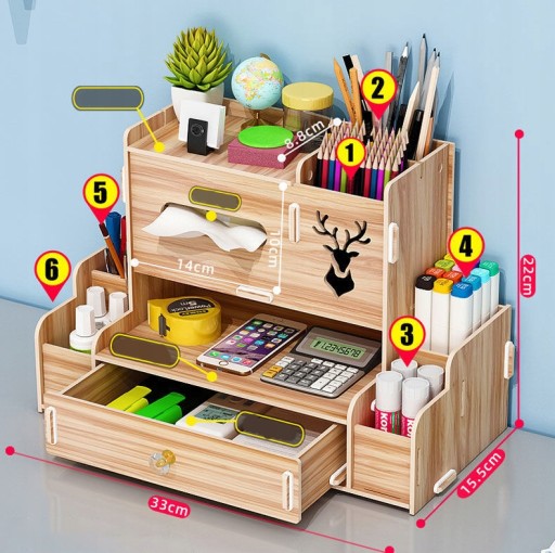 НАСТІЛЬНИЙ ОРГАНІЗАТОР ЯЩИК ДЕРЕВ’ЯНИЙ ЯЩИК ДЛЯ ІНСТРУМЕНТІВ МІЦНИЙ ТА МІЦНИЙ: виготовлений з ламінату МДФ, оснащений кріпленням із гвинтами для з’єднання, яке ретельно з’єднує кожну частину, без основних інструментів, є найкращим і найбезпечнішим варіантом зберігання для вас. збірка в збірці: швидка та проста збірка DIY, створіть свій власний настільний органайзер і насолоджуйтесь задоволенням від DIY. Економія місця: цей настільний органайзер зручний для зберігання та сортування дрібних предметів, включаючи ручки, ножиці, гумки, пульти дистанційного керування, мобільний телефон, косметику, макіяж, прикраси та інші дрібні предмети. Збільште свій вертикальний простір і звільніть для нього місце. Зробіть свій платіжний рахунок охайнішим і чистішим. ЗБЕРІГАННЯ ТА ОРГАНІЗАЦІЯ: чудово підходить для організації столу, попрощайтеся з брудним столом. Найкращий вибір для офісу, зберігає навколишнє середовище.