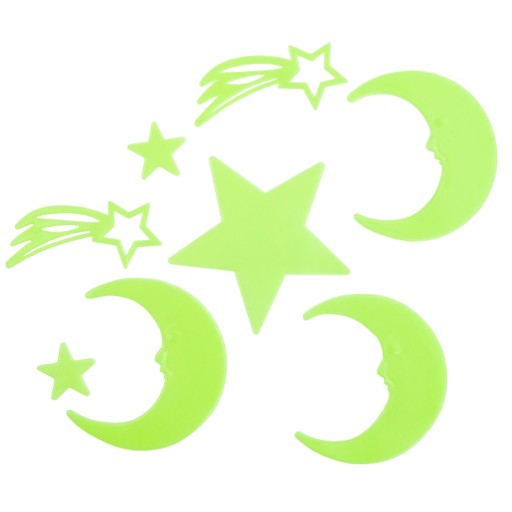 ✅ Набір флуоресцентних зірок, які поглинають світло, випромінюване сонцем або штучним світлом, і таким чином світяться в темряві.
