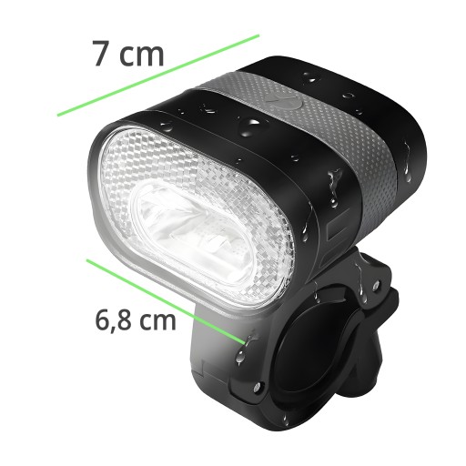 Інтегровані світлодіоди забезпечують відмінне освітлення за будь-яких умов - завдяки їм їзда на велосипеді в темний час доби або в умовах обмеженої видимості буде комфортною та безпечною. Ліхтар легко знімається з велосипеда і заряджається за допомогою USB-кабелю. Корпус лампи водонепроникний, тому пристрій можна використовувати навіть під дощем.