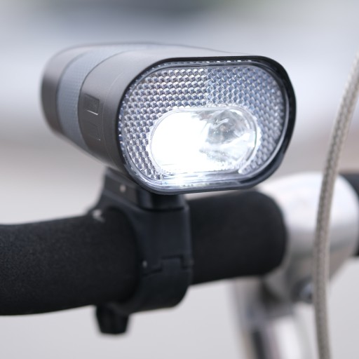 Передня лампа оснащена діодами LUXLED, що характеризується дуже сильним світлом. Це надзвичайно важливо під час їзди вночі та в темний час доби. Біле різке світло видно дуже здалеку. Передня лампа має 3 режими освітлення: постійне 100%, постійне 50% і миготливий. Ідеально підходить для нічних поїздок на велосипеді або скутері