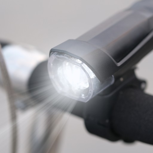 Передня лампа оснащена діодами LUXLED, що характеризується дуже сильним світлом. Це надзвичайно важливо під час їзди вночі та в темний час доби. Біле різке світло видно дуже здалеку. Передній ліхтар має три режими освітлення: постійний 100%, постійний 50% і миготливий, відмінно підійде для нічних поїздок на велосипеді або скутері.
