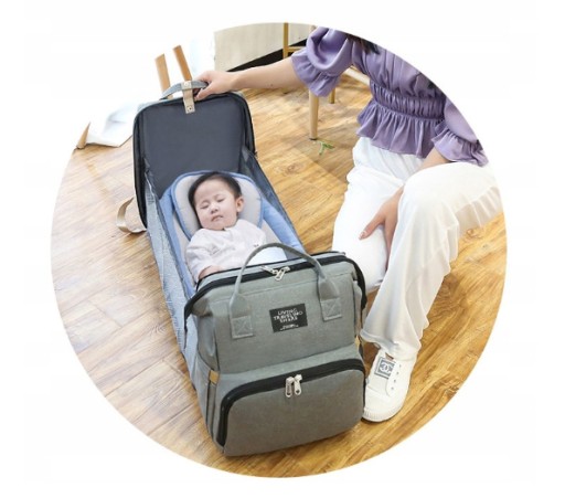 Наша унікальна сумка для підгузників має додаткову перевагу- після розкладання перетворюється в переносне ліжечко для малюків зі зручним матрацом. Це чудове рішення для батьків, які гуляють з дитиною, оскільки вони можуть не тільки змінити підгузки в зручному місці, але й забезпечити безпечне та комфортне місце для сну малюка на ходу.