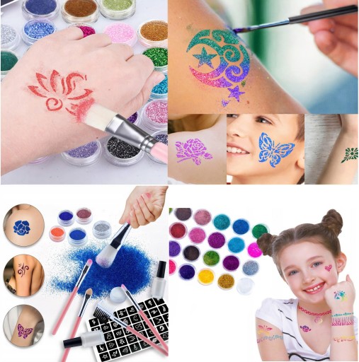 Цей повний набір включає все необхідне для створення красивих блискучих татуювань.