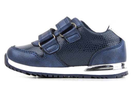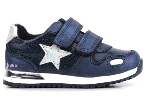 Взуття перевіреного польського брендуВойтилазовні вони виготовлені з м'якої екошкіри. вставка знатуральна шкірастворює відповідний мікроклімат для дитячих ніжок.Застібка на липучцізабезпечує ідеальну посадку та швидке надягання.Піднятий, жорсткий каблукмає завдання утримувати стопу в правильному положенні. Носок черевика єширокий і високийщоб дитина могла вільно рухати пальчиками. Товста підошва гнучка і не ковзає. Темно-синій верх прикрашений блиском, текстурою та милими зірочками. Зручне і легке спортивне взуття ідеально підійде для повсякденного носіння.