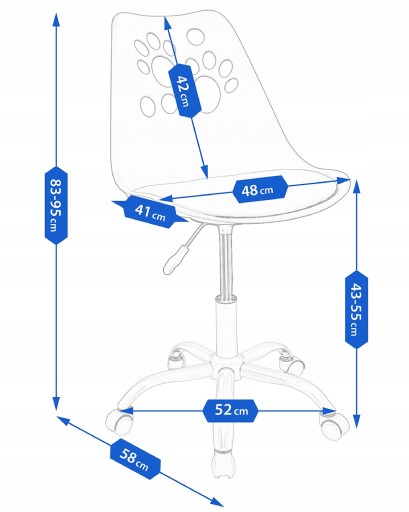 - Висота сидіння: 43 - 55 см